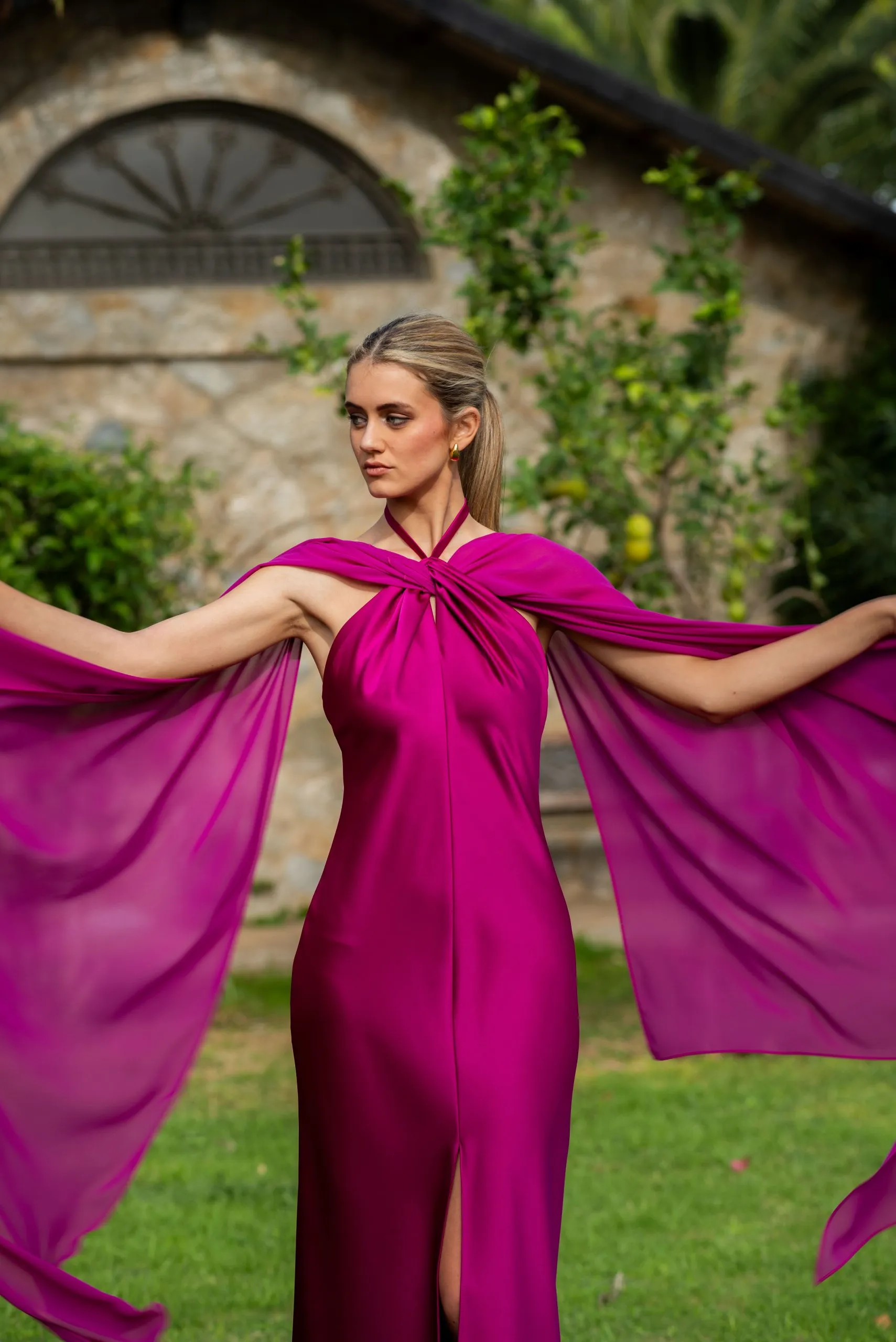 Elegir el vestido Vestido Lourdes Buganvilla de Almendro Atelier significa apostar por un diseño que combina distinción y presencia. El tono buganvilla, vibrante pero elegante, aporta vitalidad al conjunto y resalta con naturalidad en bodas y eventos especiales. Como la propia marca explica en su colección “Vestido buganvilla”: “Elige … si buscas una pieza que te haga sentir segura, radiante y llena de vitalidad”.